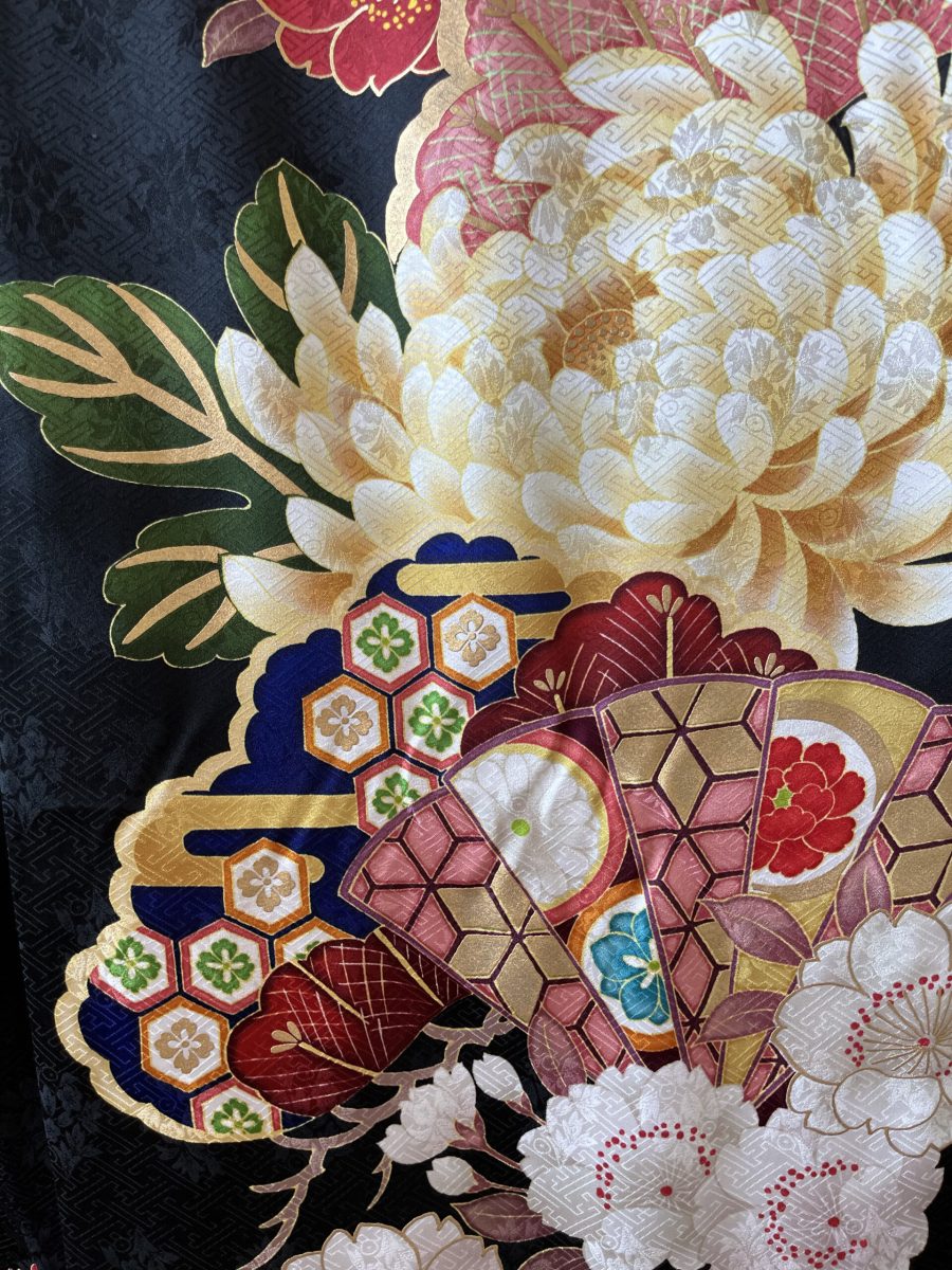 振袖一式に含まれるもの(振袖、帯、長襦袢(半衿付き)、帯揚げ、帯締め、重ね衿、腰紐5本、伊達巻2本、衿芯、前板(大小)、帯枕)※草履バッグ、肌着、足袋、ショールは別料金にてお受けいたします。