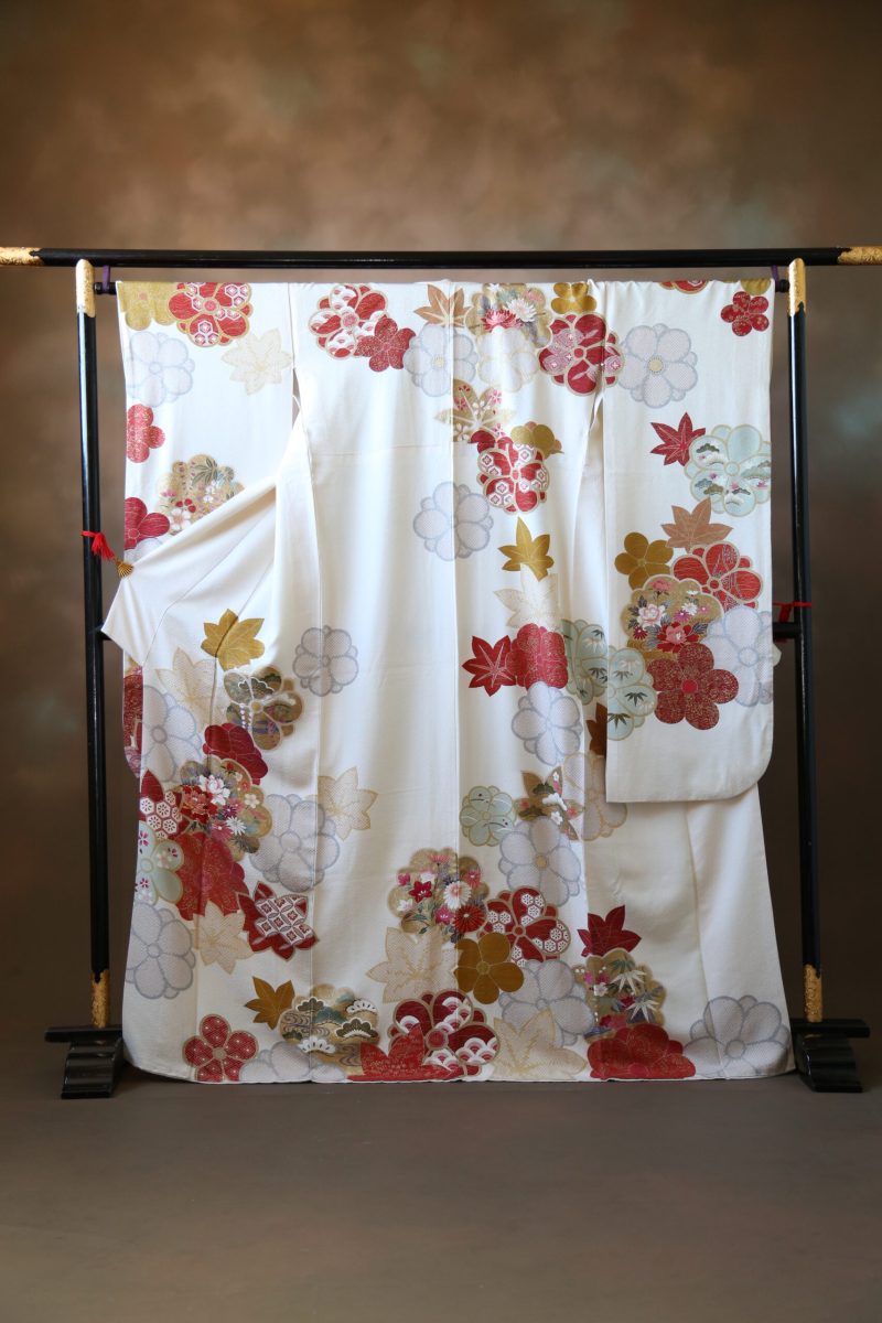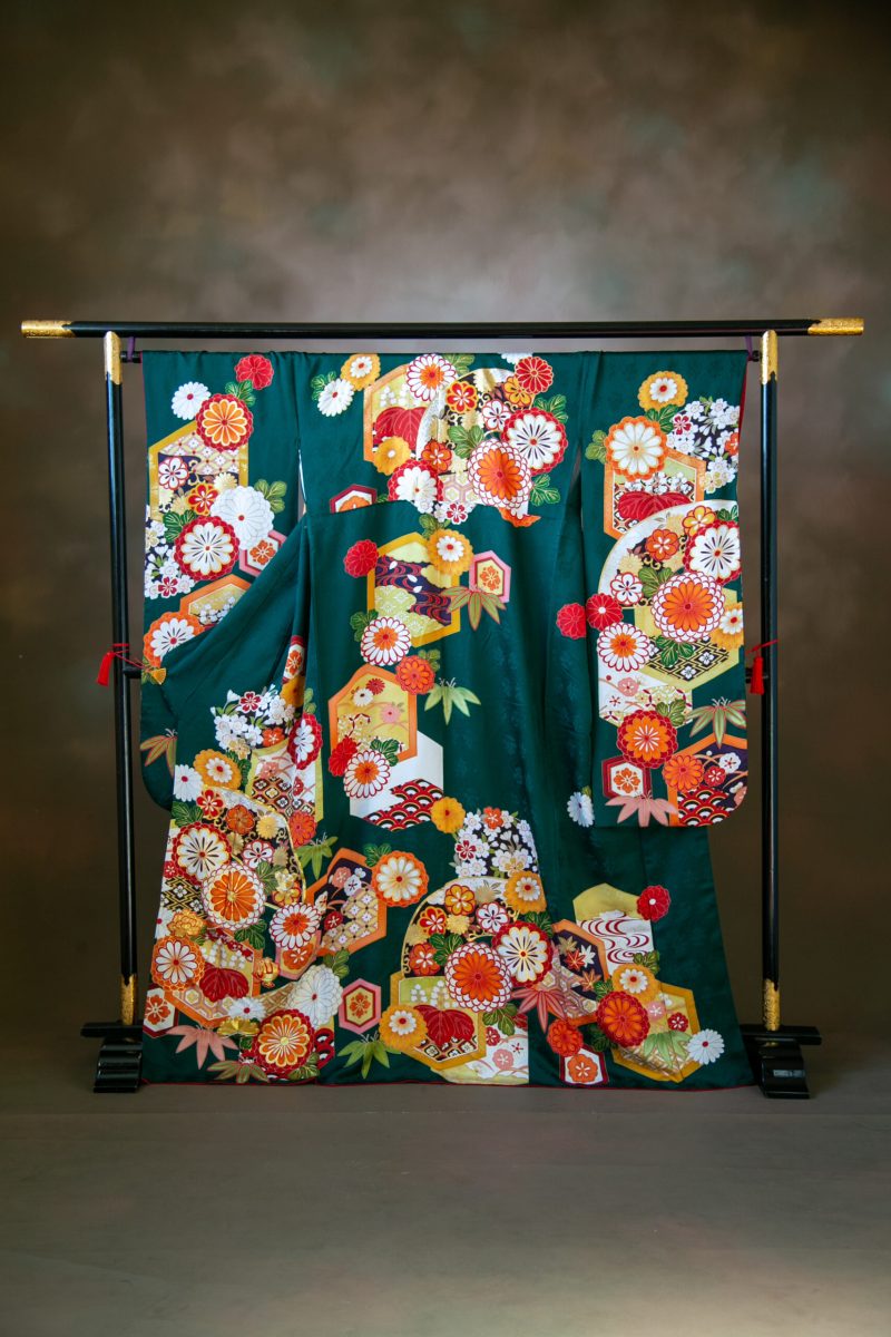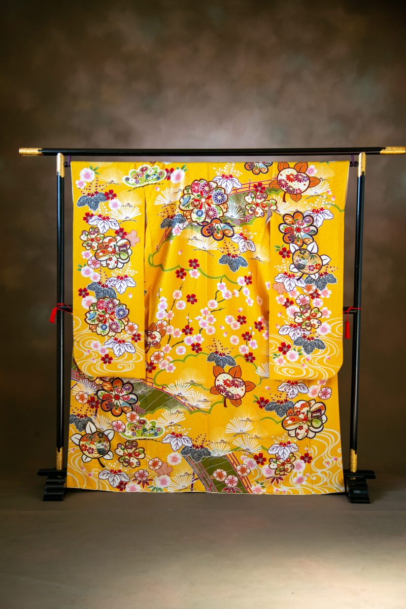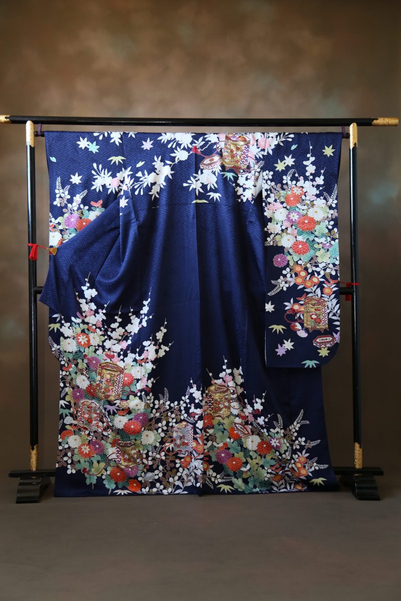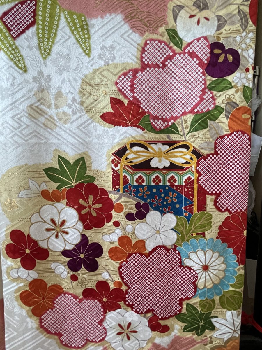 振袖一式に含まれるもの(振袖、帯、長襦袢(半衿付き)、帯揚げ、帯締め、重ね衿、腰紐5本、伊達巻2本、衿芯、前板(大小)、帯枕)※草履バッグ、肌着、足袋、ショールは別料金にてお受けいたします。