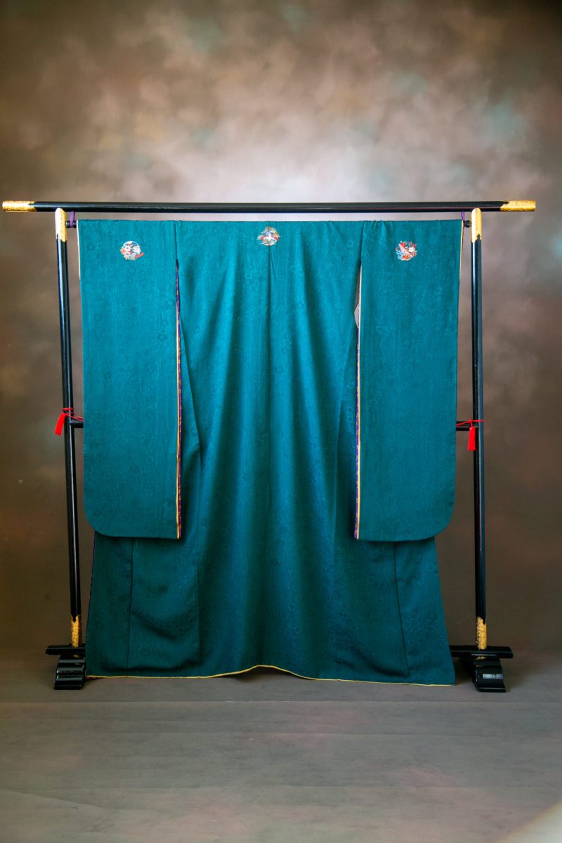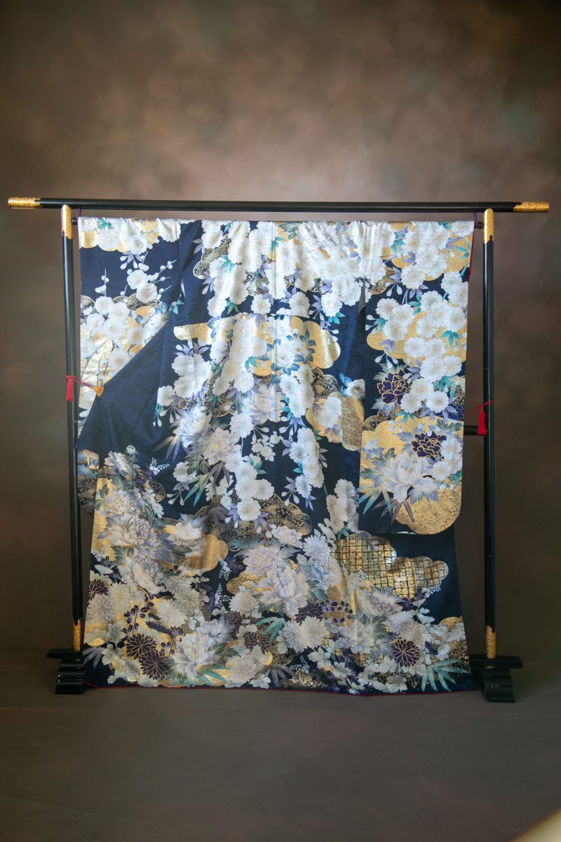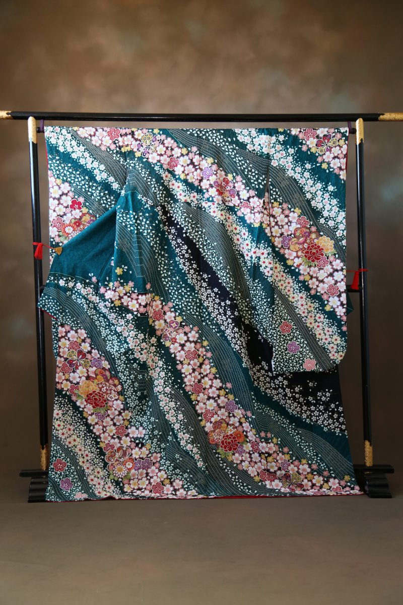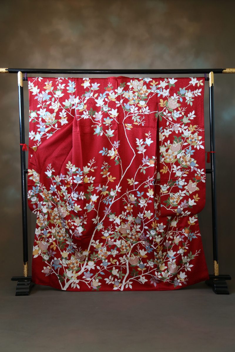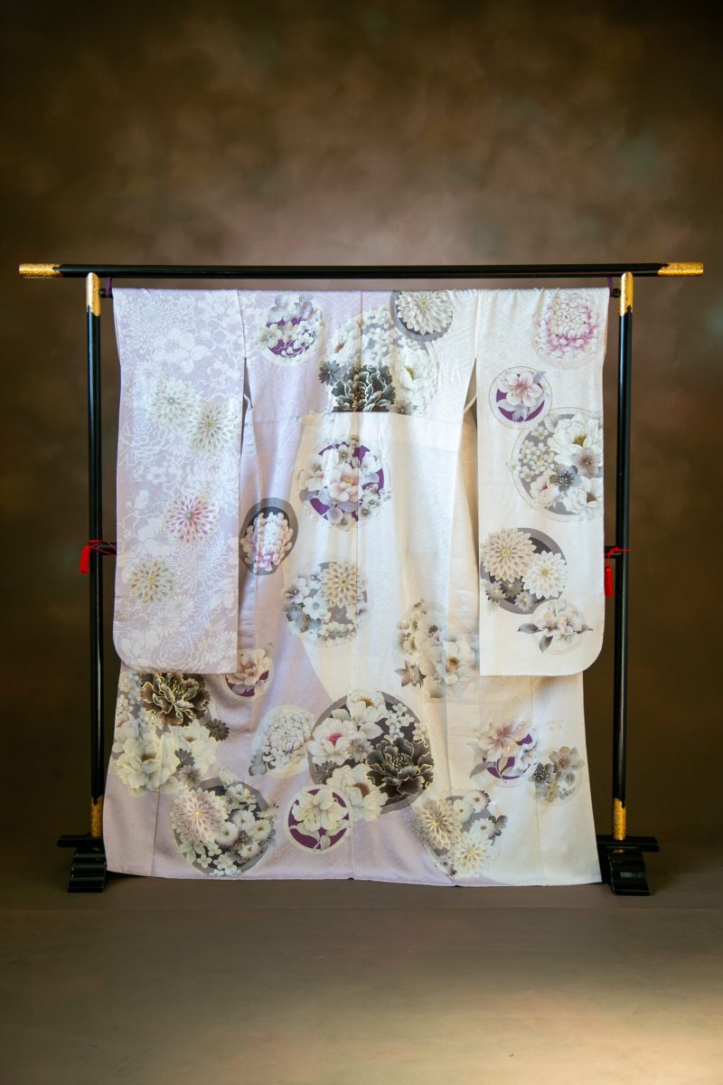 振袖一式に含まれるもの(振袖、帯、長襦袢(半衿付き)、帯揚げ、帯締め、重ね衿、腰紐5本、伊達巻2本、衿芯、前板(大小)、帯枕)※草履バッグ、肌着、足袋、ショールは別料金にてお受けいたします。