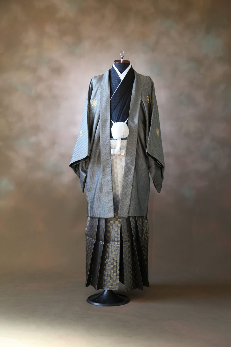 紋付袴一式に含まれるもの(着物、羽織、袴、長襦袢、角帯、羽織紐、扇子、腰紐2本、草履)※足袋は別料金にてお受けいたします。