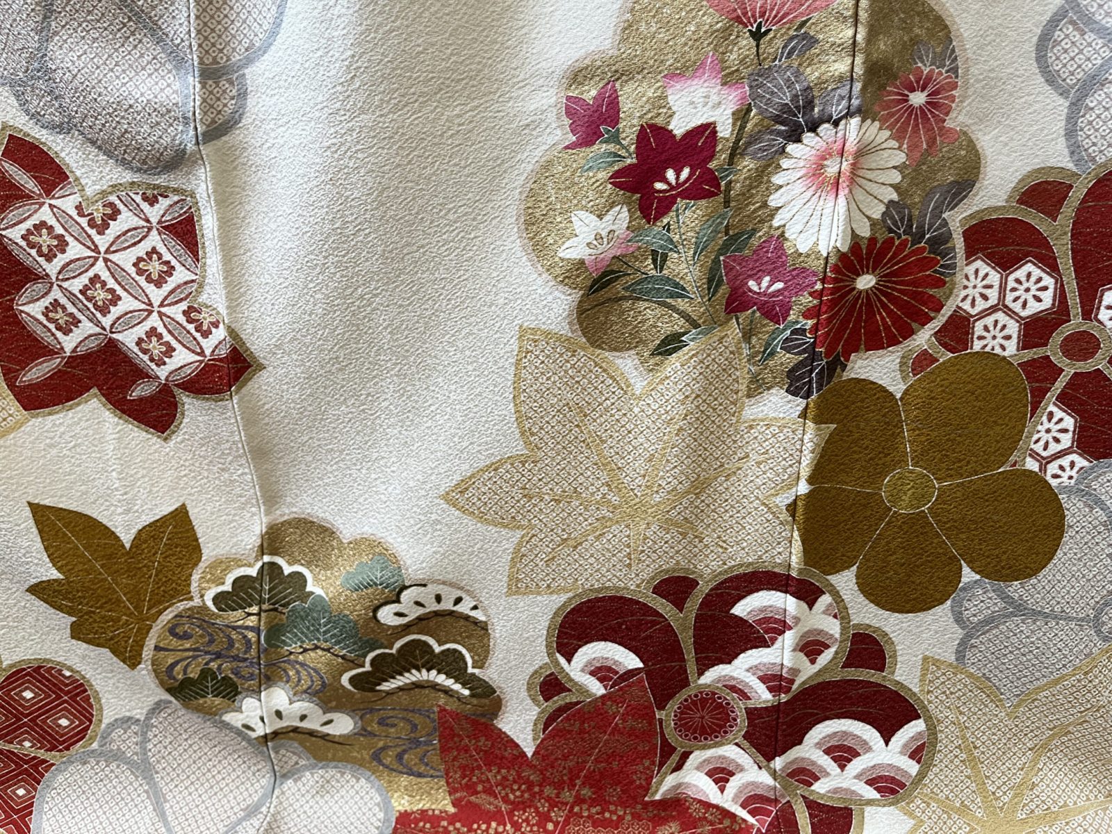 振袖一式に含まれるもの(振袖、帯、長襦袢(半衿付き)、帯揚げ、帯締め、重ね衿、腰紐5本、伊達巻2本、衿芯、前板(大小)、帯枕)※草履バッグ、肌着、足袋、ショールは別料金にてお受けいたします。