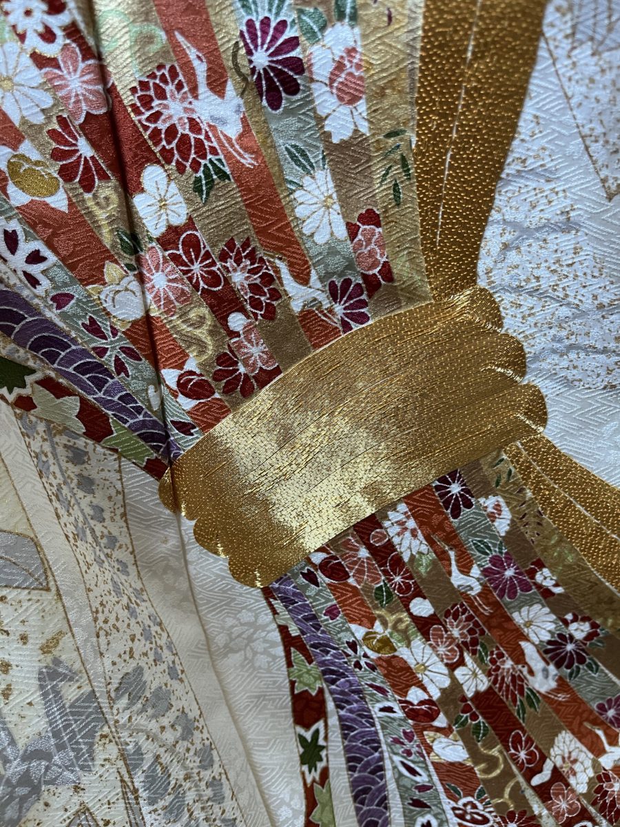 振袖一式に含まれるもの(振袖、帯、長襦袢(半衿付き)、帯揚げ、帯締め、重ね衿、腰紐5本、伊達巻2本、衿芯、前板(大小)、帯枕)※草履バッグ、肌着、足袋、ショールは別料金にてお受けいたします。