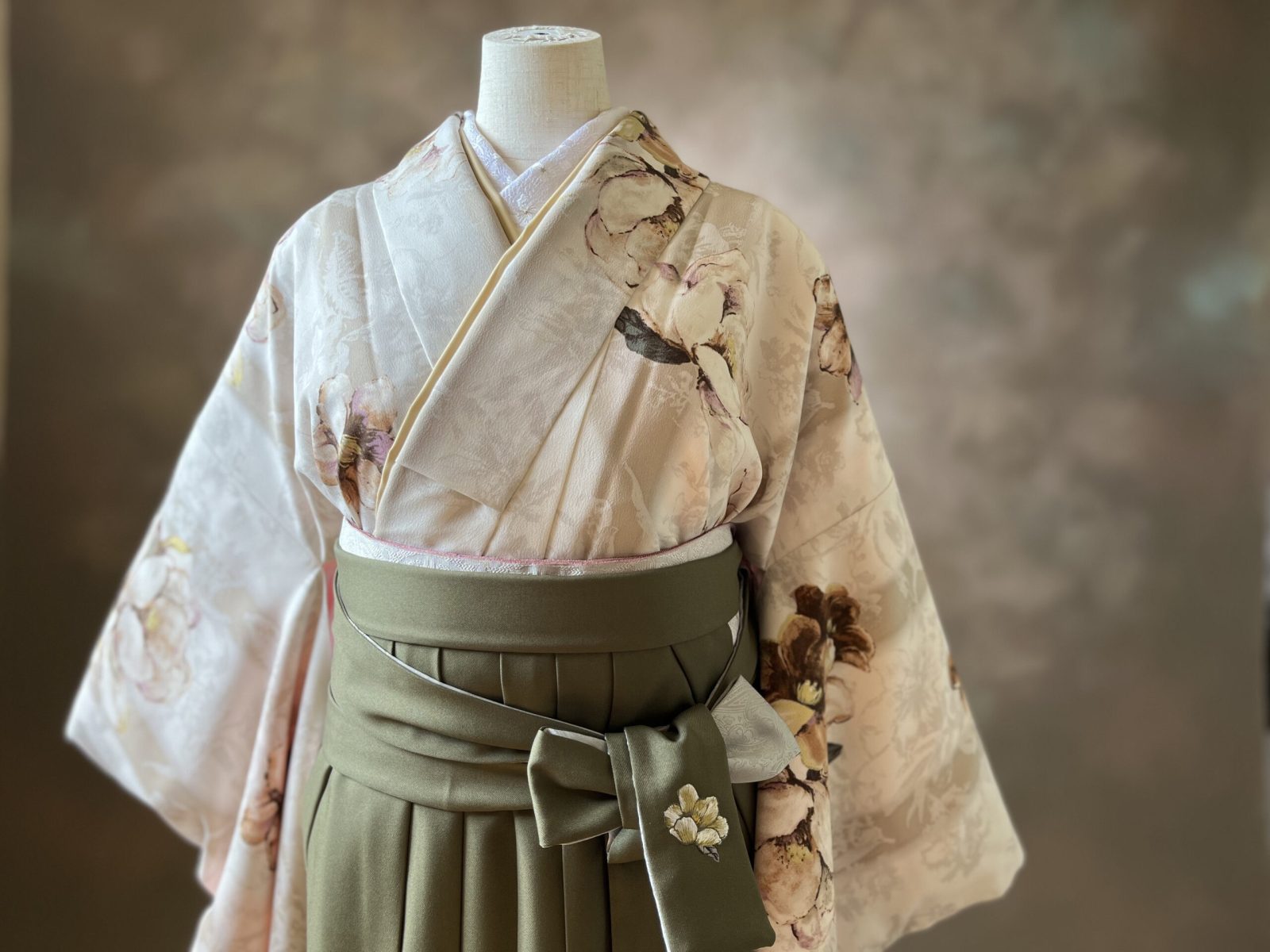 卒業袴・小学校卒業袴一式に含まれるもの(着物、袴、長襦袢、半幅帯、重ね衿、腰紐(2本〜4本)、伊達巻(1本〜2本)、前板、衿芯)※肌着、足袋、草履バッグは別料金にてお受けいたします。